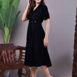 Effortlessly stylish dress with a vibrant abstract print, tie-up shoulder straps, and a chic high-low handkerchief hemline ? perfect for casual days or evening gatherings.