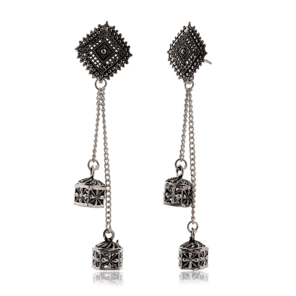 Women’s Silver Circle Long Two AZ838-OXidised Unique Western Earrings for Women Party Wear